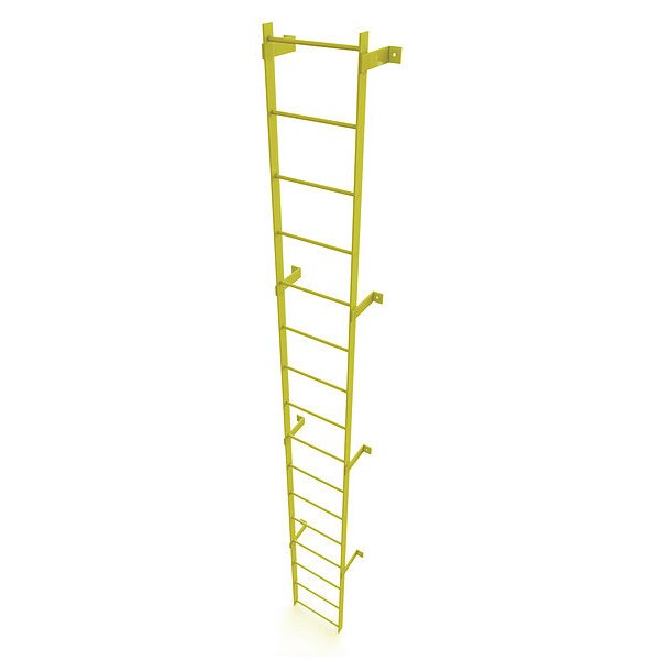 15 ft. Ladder, Steel, Standard Fixed, 16-Rung, Steel, 16 Steps, Safety Yellow FinishSKU G2281638Categories Material HandlingDescription Fixed Ladder, Walk-Thru Included No, Exit Top, Overall Height 16 ft, Overall Width 25 in, Material Steel, Load Capacity 500 lb, Number of Steps 16, Top Step Height 15 ft, Rung Dia. 3/4 in, Rung/Step Spacing 12 in, Step Width 18 in, Finish Safety Yellow, Standards ANSI; OSHA Compliant, Manufacturers Warranty Length 1 yrgraingerSKU: 231D91, mscSKU: , zoro_no: G2281638, mongo_id: 65bbe96322d7a989a994ff19