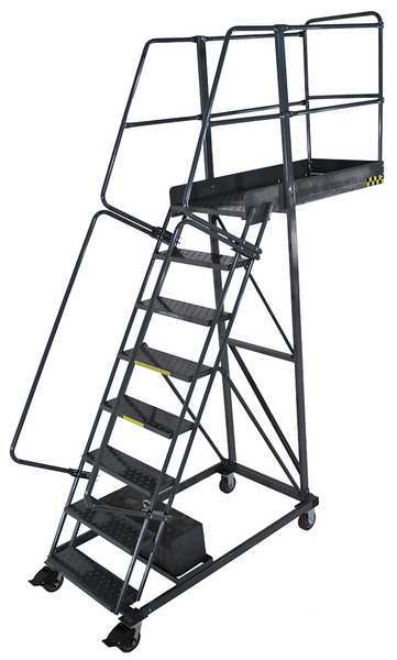 SKU G3491166Categories Material HandlingDescription Rolling Ladder, Material Steel, Platform Height 110 in, Handrails Included Yes, Handrail Height 30 in, Overall Height 140 in, Number of Steps 11, Unassembled, Load Capacity 450 lb, Step Tread Serrated, Platform Depth 10 in, Platform Width 24 in, Bottom Width 32 in, Base Depth 156 in, Overall Width 32 in, Climbing Angle 59 Degrees , Step Depth 7 in, Step Width 24 in, Ladder Actuation Foot Activated Step Lock, Finish Powder Coated, Color Gray, Standards ANSI, OSHA, Rear Exit NograingerSKU: 21UY01, mscSKU: , zoro_no: G3491166, mongo_id: 65bbe96322d7a989a994ff49