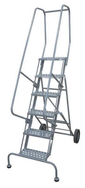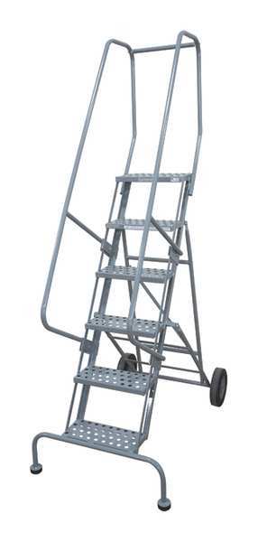 100 in H Steel Rolling Ladder, 7 StepsSKU G1002517Categories Material HandlingDescription Rolling Ladder, Material Steel, Platform Height 70 in, Handrails Included Yes, Handrail Height 30 in, Overall Height 100 in, Number of Steps 7, Unassembled, Load Capacity 450 lb, Step Tread Expanded Metal, Platform Depth 10 in, Platform Width 16 in, Bottom Width 30 in, Base Depth 81 in, Overall Width 30 in, Climbing Angle 59 Degrees , Step Depth 7 in, Step Width 16 in, Ladder Actuation None, Finish Powder Coated, Color Gray, Standards ANSI, OSHA, Rear Exit NograingerSKU: 21VD83, mscSKU: , zoro_no: G1002517, mongo_id: 65bbe93c22d7a989a9941a14