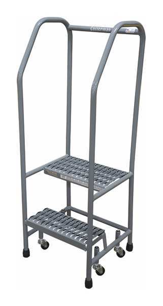 SKU G0638690Categories Material HandlingDescription Rolling Ladder, Material Steel, Platform Height 20 in, Handrails Included Yes, Handrail Height 30 in, Overall Height 50 in, Number of Steps 2, Assembled, Load Capacity 450 lb, Step Tread Serrated, Platform Depth 10 in, Platform Width 16 in, Bottom Width 18 in, Base Depth 18 in, Overall Width 18 in, Climbing Angle 59 Degrees , Step Depth 7 in, Step Width 16 in, Ladder Actuation Weight Activated Step Lock, Finish Powder Coated, Color Gray, Standards ANSI, OSHA, Rear Exit NograingerSKU: 21UP53, mscSKU: , zoro_no: G0638690, mongo_id: 65bbe93c22d7a989a99419eb