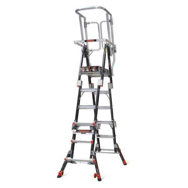 SKU G3895949Categories Material HandlingDescription Safety Cage Platform Ladder, Ladder Height 4 to 6 ft, Platform Width 13 1/2 in, Platform Depth 22 in, Platform Height 4 to 6 ft, Load Capacity 375 lb, Bottom Width 17 in, Base Spread 49 in to 63 in, Material Fiberglass, Series Compact Safety Cage, Number of Steps 4 to 6, Step Depth 1 1/2 in 1 3/4 in, Step Tread Ribbed, Rung/Step Spacing 12 in, ANSI Type IAA, Includes Tip and Glide Wheels, Standards OSHA and ANSI 14.5, Net Weight 73 lbgraingerSKU: 48RR82, mscSKU: , zoro_no: G3895949, mongo_id: 65bbe93c22d7a989a9941a2c
