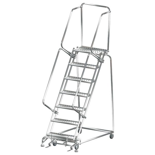 SKU G3491796Categories Material HandlingDescription Rolling Ladder, Material Steel, Platform Height 80 in, Handrails Included Yes, Handrail Height 30 in, Overall Height 110 in, Number of Steps 8, Unassembled, Load Capacity 450 lb, Step Tread Serrated, Platform Depth 20 in, Platform Width 30 in, Bottom Width 33 in, Base Depth 102 in, Overall Width 32 in, Climbing Angle 59 Degrees , Step Depth 7 in, Step Width 30 in, Ladder Actuation Foot Activated Step Lock, Finish Powder Coated, Color Gray, Standards ANSI, OSHA, Rear Exit NograingerSKU: 21UX37, mscSKU: , zoro_no: G3491796, mongo_id: 65bbe93c22d7a989a9941a04