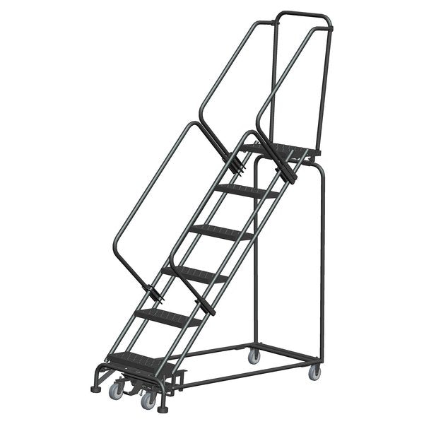100 in H Steel Rolling Ladder, 7 StepsSKU G0997206Categories Material HandlingDescription Rolling Ladder, Material Steel, Platform Height 70 in, Handrails Included Yes, Handrail Height 30 in, Overall Height 100 in, Number of Steps 7, Assembled, Load Capacity 450 lb, Step Tread Expanded Metal, Platform Depth 10 in, Platform Width 16 in, Bottom Width 24 in, Base Depth 53 in, Overall Width 24 in, Climbing Angle 59 Degrees , Step Depth 7 in, Step Width 16 in, Ladder Actuation Foot Activated Step Lock, Finish Powder Coated, Color Gray, Standards ANSI, OSHA, Rear Exit YesgraingerSKU: 21UT18, mscSKU: , zoro_no: G0997206, mongo_id: 65bbe93c22d7a989a99419f3