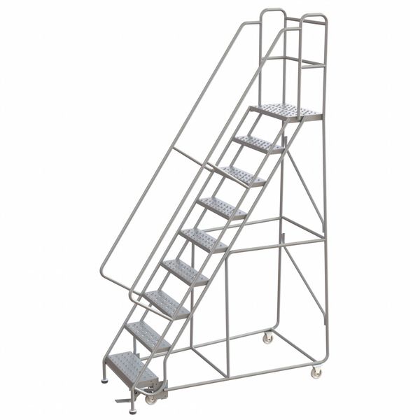 130 in H Steel Rolling Ladder, 10 StepsSKU G3491400Categories Material HandlingDescription Rolling Ladder, Material Steel, Platform Height 100 in, Handrails Included Yes, Handrail Height 30 in, Overall Height 130 in, Number of Steps 10, Unassembled, Load Capacity 450 lb, Step Tread Serrated, Platform Depth 20 in, Platform Width 24 in, Bottom Width 32 in, Base Depth 144 in, Overall Width 32 in, Climbing Angle 59 Degrees , Step Depth 7 in, Step Width 24 in, Ladder Actuation Foot Activated Step Lock, Finish Powder Coated, Color Gray, Standards ANSI, OSHA, Rear Exit NograingerSKU: 21UX76, mscSKU: , zoro_no: G3491400, mongo_id: 65bbe93c22d7a989a99419fe