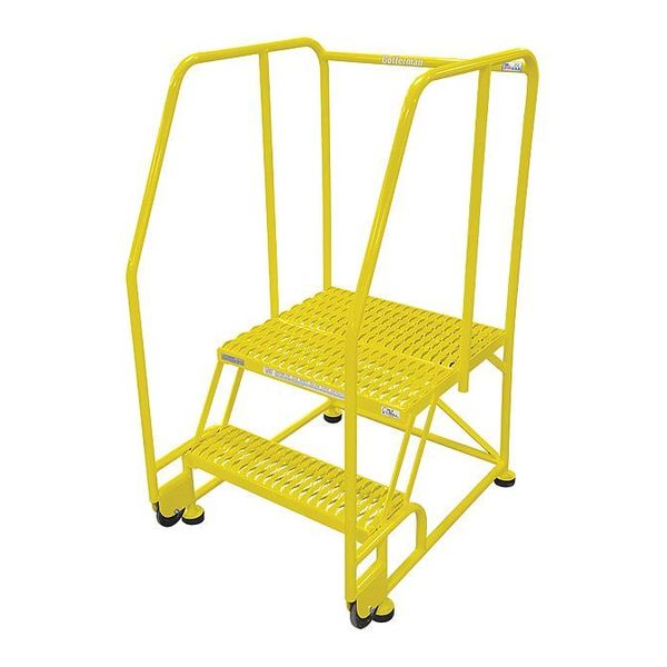 50 in H Steel Tilt and Roll Ladder, 2 StepsSKU G0999455Categories Material HandlingDescription Tilt and Roll Ladder, Material Steel, Platform Height 20 in, Handrails Included Yes, Handrail Height 30 in, Overall Height 50 in, Number of Steps 2, Assembled, Load Capacity 450 lb, Step Tread Expanded Metal, Platform Depth 20 in, Platform Width 16 in, Bottom Width 34 in, Base Depth 20 in, Overall Width 20 in, Climbing Angle 59 Degrees , Step Depth 7 in, Step Width 16 in, Ladder Actuation None, Finish Powder Coated, Color Yellow, Standards ANSI, OSHA, Rear Exit NograingerSKU: 21VA46, mscSKU: , zoro_no: G0999455, mongo_id: 65bbe91622d7a989a9933408
