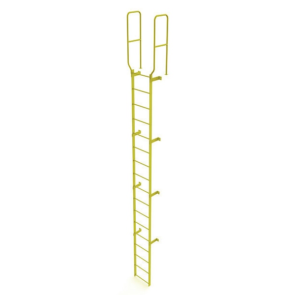 19 ft. 6" Ladder, Walk-Thru Fixed, Steel, 17-Rung, Steel, 17 Steps, Safety Yellow FinishSKU G2281778Categories Material HandlingDescription Fixed Ladder, Walk-Thru Included Yes, Exit Top, Overall Height 20 ft, Overall Width 28 in, Material Steel, Load Capacity 450 lb, Number of Steps 17, Top Step Height 16 ft, Rung Dia. 3/4 in, Rung/Step Spacing 12 in, Step Width 18 in, Finish Safety Yellow, Standards ANSI; OSHA Compliant, Includes 42 In. guardrails, Manufacturers Warranty Length 1 yrgraingerSKU: 231F10, mscSKU: , zoro_no: G2281778, mongo_id: 65bbe91622d7a989a99333dd