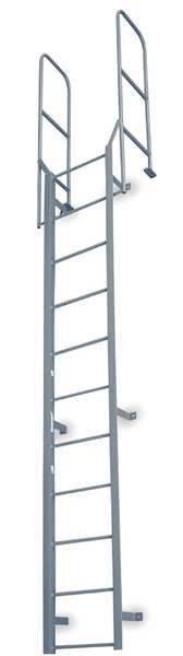 SKU G3337531Categories Material HandlingDescription Fixed Ladder, Walk-Thru Included Yes, Exit Forward, Overall Height 17 ft 8 in, Overall Width 22 in, Material Steel, Load Capacity 300 lb, Number of Steps 15, Top Step Height 14 ft, Rung Dia. 3/4 in, Rung/Step Spacing 12 in, Step Width 16 in, Finish Gray Powder Coated, Standards OSHA and ANSIgraingerSKU: 4EU19, mscSKU: , zoro_no: G3337531, mongo_id: 65bbe91622d7a989a9933436