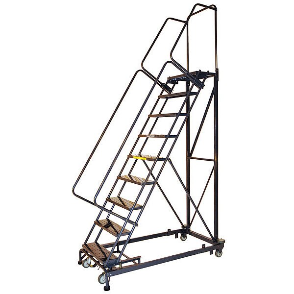 123 in H Steel Rolling Ladder, 9 StepsSKU G5205789Categories Material HandlingDescription Rolling Ladder, Material Steel, Platform Height 90 in, Handrails Included Yes, Handrail Height 30 in, Overall Height 123 in, Number of Steps 9, Unassembled, Load Capacity 800 lb, Step Tread Perforated, Platform Depth 14 in, Platform Width 24 in, Bottom Width 32 in, Base Depth 68 in, Overall Width 32 in, Climbing Angle 59 Degrees , Step Depth 7 in, Step Width 24 in, Ladder Actuation Weight Activated Step Lock, Finish Powder Coated, Color Gray, Standards ANSI, OSHAgraingerSKU: 41LH43, mscSKU: , zoro_no: G5205789, mongo_id: 65bbe91622d7a989a99333f9