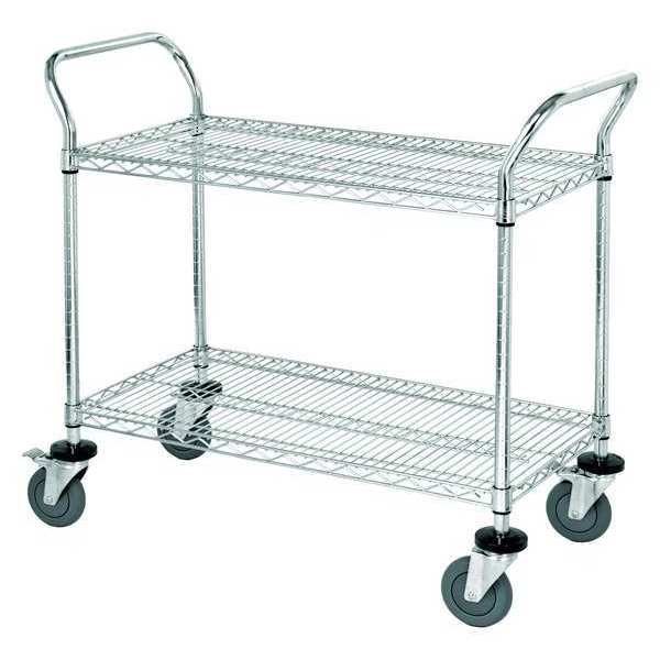 SKU G6481964Categories Material HandlingDescription Corrosion-Resistant Utility Cart with Shallow Lipped Wire Shelves, Load Capacity 375 lb, Number of Shelves 3, Shelf Width 18 in, Shelf Length 36 in, Material Stainless Steel, Finish Chrome, Caster Wheel Dia. 4 in, Color Silver, Caster Brake Type No Brake Included, Caster Wheel/Tread Material Rubber, Caster/Wheel Configuration (4) Swivel, Distance Between Shelves 10 in, Handle Type (2) Raised, Lip Style 4-Sided Lipped, Shelf Orientation Flat, Collapsible No, Overall Height 38 ingraingerSKU: 20W637, mscSKU: , zoro_no: G6481964, mongo_id: 65bbe6ef3aaddbd5a9063208