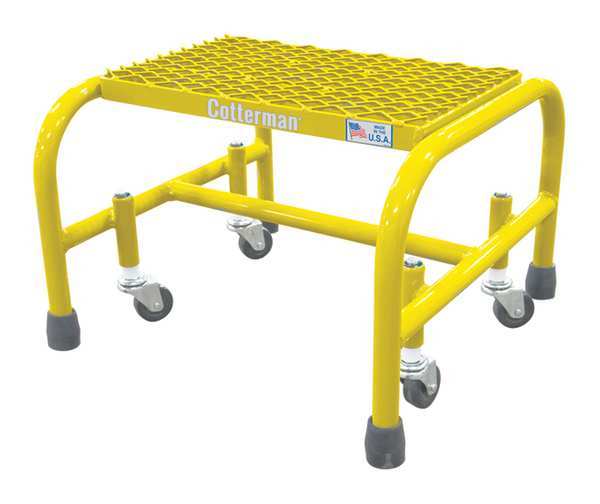 SKU G0895883Categories Material HandlingDescription Step Stool Product Group Rolling Platform, Number of Steps 1, Overall Height 12 in, Material Steel, Load Capacity 450 lb, Top Step Height 12 in, Top Step Depth 7 in, Bottom Width 19 in, Base Depth 19 in, Color Yellow, Finish Powder Coated, Standards OSHA 1910.29 and ANSI A14.7, Ladder Actuation Spring-Loaded Casters, Step Tread Expanded Metal, Step Width 16 ingraingerSKU: , mscSKU: , zoro_no: G0895883, mongo_id: 65bbe8ef22d7a989a9925034
