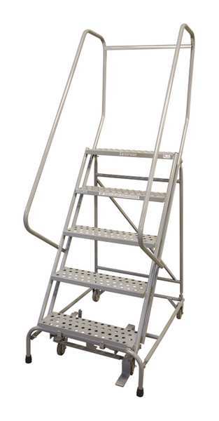 SKU G0998195Categories Material HandlingDescription Rolling Ladder, Material Steel, Platform Height 50 in, Handrails Included Yes, Handrail Height 30 in, Overall Height 80 in, Number of Steps 5, Unassembled, Load Capacity 450 lb, Step Tread Perforated, Platform Depth 10 in, Platform Width 24 in, Bottom Width 30 in, Base Depth 84 in, Overall Width 30 in, Climbing Angle 59 Degrees , Step Depth 7 in, Step Width 24 in, Ladder Actuation Foot Activated Step Lock, Finish Powder Coated, Color Gray, Standards ANSI, OSHA, Rear Exit NograingerSKU: 21UW31, mscSKU: , zoro_no: G0998195, mongo_id: 65bbe8ef22d7a989a992503d