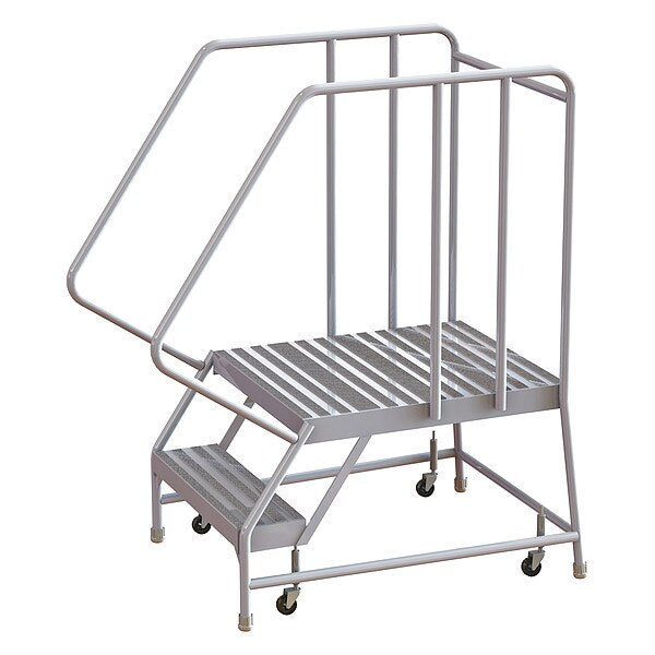 48 in H Steel Rolling Ladder, 2 StepsSKU G6249223Categories Material HandlingDescription Rolling Ladder, Material Steel, Platform Height 18 in, Handrails Included Yes, Handrail Height 30 in, Overall Height 48 in, Number of Steps 2, Unassembled, Load Capacity 450 lb, Step Tread Antislip Vinyl, Platform Depth 14 in, Platform Width 16 in, Bottom Width 22 in, Base Depth 26 in, Overall Width 22 in, Climbing Angle 59 Degrees , Step Depth 8 in, Step Width 16 in, Ladder Actuation Weight Activated Step Lock, Finish Powder Coated, Color Gray, Standards ANSI, OSHA, Includes Left HandrailgraingerSKU: 6LYJ1, mscSKU: , zoro_no: G6249223, mongo_id: 65bbe8ef22d7a989a992503b