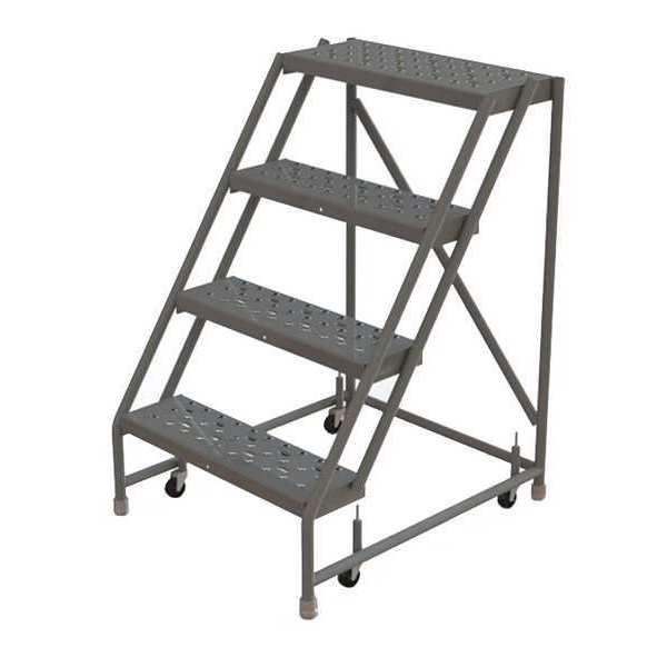 40 in H Steel Rolling Ladder, 4 StepsSKU G0980625Categories Material HandlingDescription Rolling Ladder, Material Steel, Platform Height 40 in, Handrails Included No, Overall Height 40 in, Number of Steps 4, Unassembled, Load Capacity 450 lb, Step Tread Perforated, Platform Depth 10 in, Platform Width 24 in, Bottom Width 30 in, Base Depth 35 in, Overall Width 30 in, Climbing Angle 56 Degrees , Step Depth 7 in, Step Width 24 in, Ladder Actuation Spring-Loaded Casters, Finish Powder Coated, Color Gray, Standards ANSI, OSHA, Includes Crutch Tips, Manufacturers Warranty Length 1 yrgraingerSKU: 25NW09, mscSKU: , zoro_no: G0980625, mongo_id: 65bbe8ef22d7a989a992500b