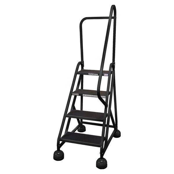 66 in H Steel Rolling Ladder, 4 StepsSKU G2125125Categories Material HandlingDescription Rolling Ladder, Material Steel, Platform Height 36 in, Handrails Included Yes, Handrail Height 30 in, Overall Height 66 in, Number of Steps 4, Unassembled, Load Capacity 450 lb, Step Tread Antislip Vinyl, Platform Depth 14 in, Platform Width 16 in, Bottom Width 25 in, Base Depth 39 in, Overall Width 25 in, Climbing Angle 59 Degrees , Step Depth 8 in, Step Width 16 in, Ladder Actuation Weight Activated Step Lock, Finish Powder Coated, Color Black, Standards ANSI, OSHA, Includes Right HandrailgraingerSKU: 6MXJ5, mscSKU: , zoro_no: G2125125, mongo_id: 65bbe8ef22d7a989a9925040