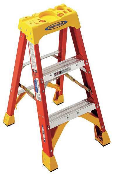 Fiberglas Stepladder, 3 ft Ladder Ht, 2 Steps, 300 lb, 23 1/8 in Base Spread, 18 1/4 in Bottom W