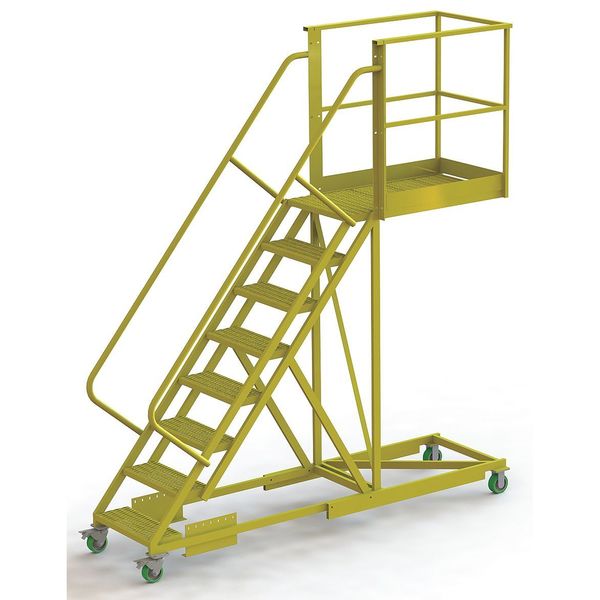 SKU G9957972Categories Material HandlingDescription Supported, Cantilever Rolling Ladder, Material Steel, Unassembled, Handrails Included Yes, Platform Height 80 in, Platform Width 24 in, Platform Depth 40 in, Overall Height 122 in, Load Capacity 300 lb, Handrail Height 42 in, Bottom Width 41 in, Base Depth 109 in, Number of Steps 8, Climbing Angle 50 Degrees , Ladder Actuation Locking Casters, Step Depth 10 in, Step Width 24 in, Step Tread Serrated, Finish Powder Coated, Color Yellow, Standards OSHA 1910.29 and ANSI A14.7graingerSKU: 15E976, mscSKU: , zoro_no: G9957972, mongo_id: 65bbe8ef22d7a989a9924ff1