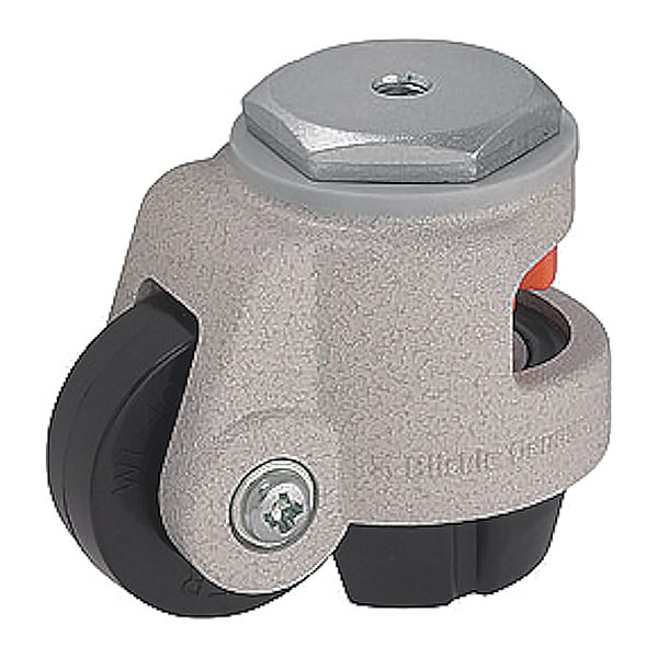 Leveling Caster, 1100lb. Load, Black WheelSKU G6305262Categories Material HandlingDescription Leveling Threaded Stem Caster, Swivel Caster with Leveling Pad, 1100 lb Load Rating, 1000 to 2999 lb, 2 1/2 in Wheel Dia., 1 1/8 in Wheel Width, Nylon Wheel/Tread Material, 4 1/8 in Mounting Height, Plain Wheel Bearing Type, Caster Stem Size M12 x 15, Threaded Bolt Hole Caster Stem Type, Aluminum Caster Frame Material, Powder Coated Frame Finish, Yes Non-Marking, 1 Number of WheelsgraingerSKU: 454N58, mscSKU: , zoro_no: G6305262, mongo_id: 65bbe6eb3aaddbd5a906194d