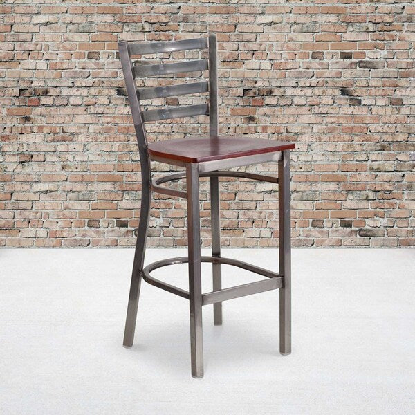 HERCULES Series Ladder Back Walnut Wood Restaurant Barstool, PK2