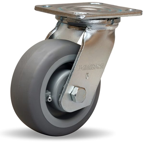 Kingpinless Swivel Caster, 5" x 2" Ergo-Glide Wheel (80A), 3/4" Sealed Precision Ball Bearings