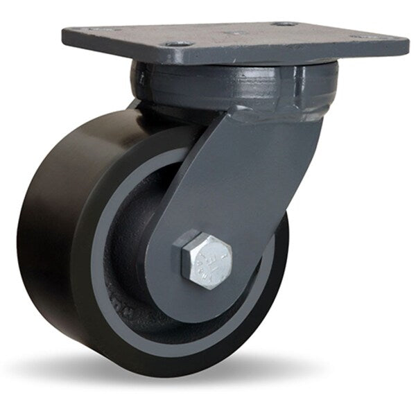 Super Endurance Swivel Caster, 6" x 3" Duralast XC Polyurethane (70D) on Cast Iron Wheel