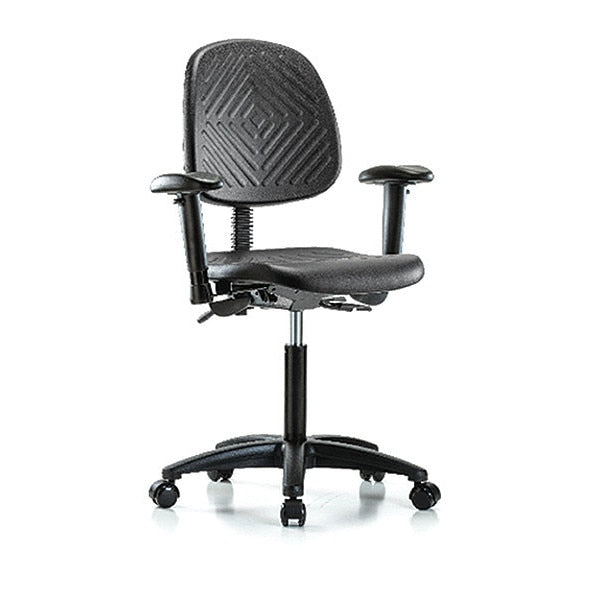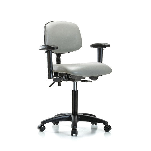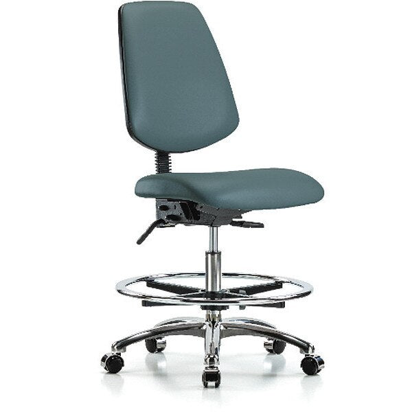 Bench Chair, Vinyl, Med, Bk, CF, Cast, Blu, Caster Type: Rolling