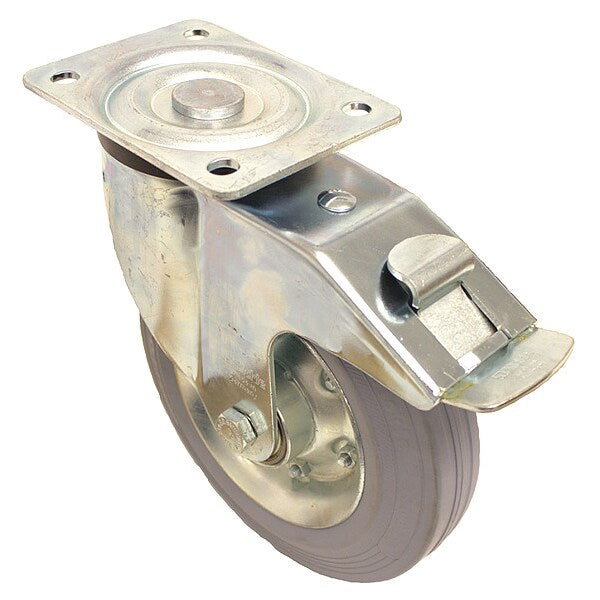 Swivel Plate Caster, Gray Nylon, 6", Brake, Load Rating: 1250 lb.