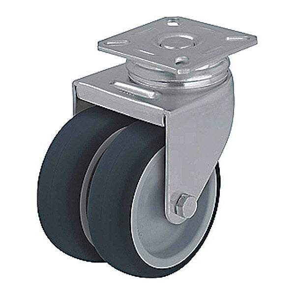 Kingpinless Plate Caster, Swivel, Rubber, 5 in, 440 lb
