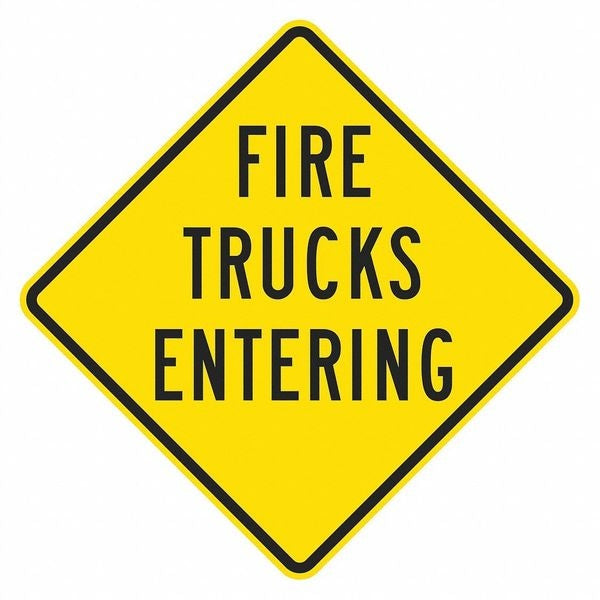 Fire Trucks EntTraffic Sign, 12 in H, 12 in W, Aluminum, Diamond, English, T1-1913-EG_12x12