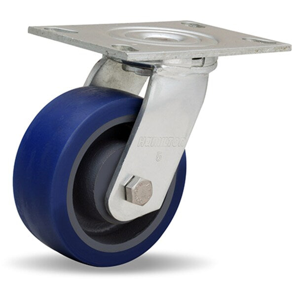 General Service Swivel Caster, 5" x 2" Ergo-Glide Polyurethane (85A) on Cast Iron Wheels