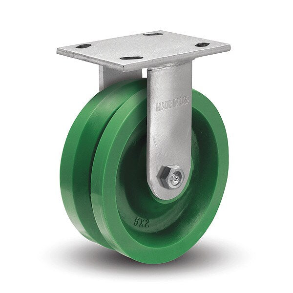 8" X 2" Non-Marking Polyurethane V Grove Rigid Caster, No Brake, Loads Up To 300 lb