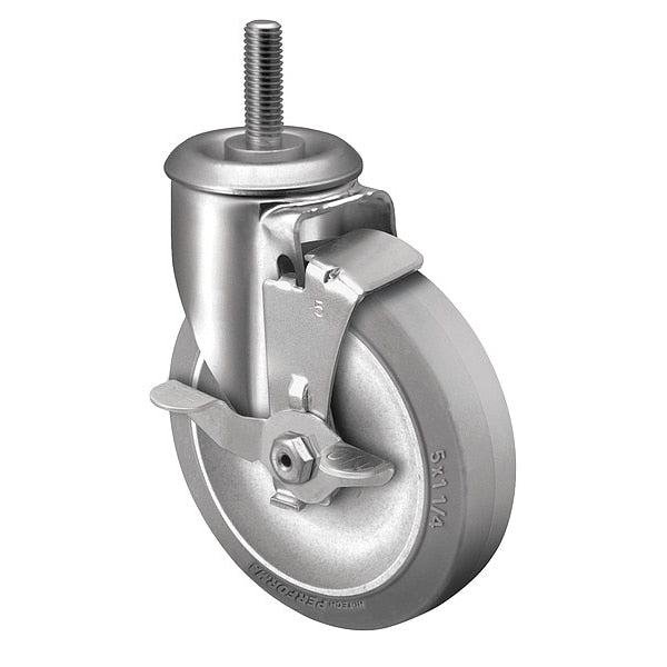 SKU G7812658Categories Material HandlingDescription General Purpose Threaded Stem Caster, Swivel Caster with Brake, 250 lb Load Rating, 0 to 299 lb, 4 in Wheel Dia., 1 1/4 in Wheel Width, Rubber Wheel/Tread Material, 6 1/2 in Mounting Height, Precision Ball, 1 In.-13 x 1 1/2 in Caster Stem Size, Threaded, Steel Caster Frame Material, Zinc Plated Frame Finish, Yes Non-Marking, 1 Number of WheelsgraingerSKU: 56HE42, mscSKU: , zoro_no: G7812658, mongo_id: 65bbe89622d7a989a99038ae