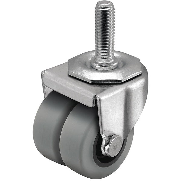 2" X 13/16" Non-Marking Rubber Thermoplastic Swivel Caster, No Brake, Loads Up To 180 lbSKU G7806385Categories Material HandlingDescription Low-Profile Easy-Turn Threaded Stem Caster, Swivel Caster, 180 lb Load Rating, 0 to 299 lb, 2 in Wheel Dia., 13/16 in Wheel Width, Thermoplastic Rubber Wheel/Tread Material, 2 3/4 in Mounting Height, Plain, 1/2 In.-13 x 1 1/2 in Caster Stem Size, Threaded, Steel Caster Frame Material, Zinc Plated Frame Finish, Yes Non-Marking, 2 Number of WheelsgraingerSKU: , mscSKU: , zoro_no: G7806385, mongo_id: 65bbe89622d7a989a990394c