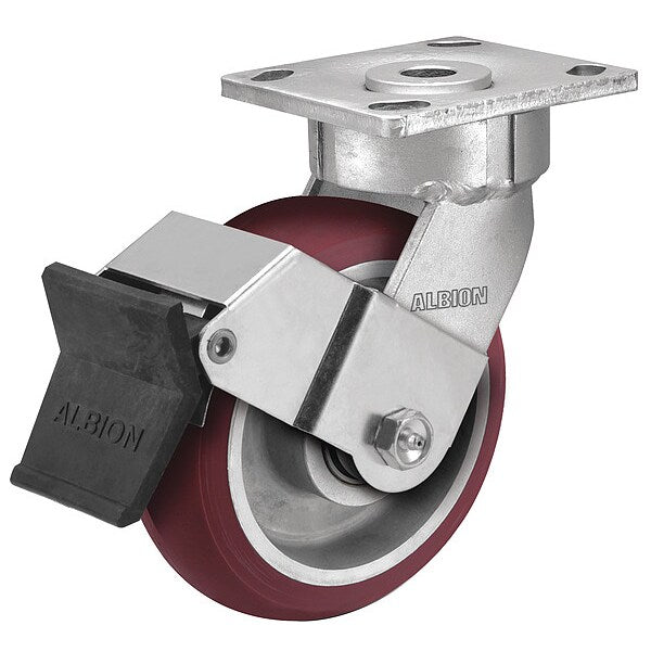 Champion Swivel Caster, 6" x 3" Duralast Polyurethane (95A) on Cast Iron Wheel, Foot Brake
