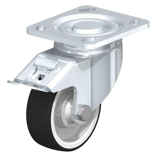 4" X 2" Non-Marking Polyurethane Swivel Caster, Face Brake, Loads Up To 800 lb