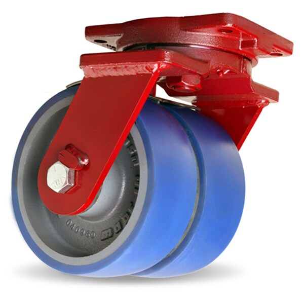 Extra Heavy Duty Dual-Wheel Swivel Caster, 8" x 3" Nylast High Performance Cast Nylon Wheels