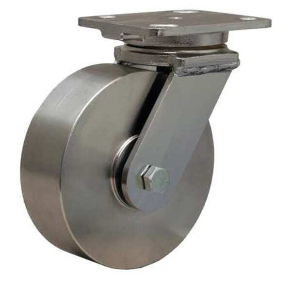 Plate Caster, Swivel, SS, 6 in., 1200 lb., Slvr