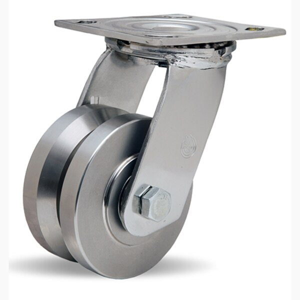 Stainless Steel Swivel Caster, 4" x 2" Stainless Steel V-Grooved Wheel, 3/4" Delrin Bearing