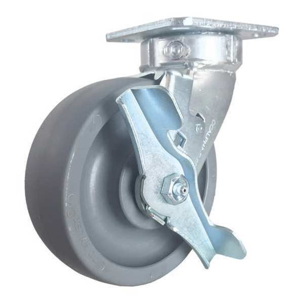 Swivel Plate Caster, w/Brake, SideStrap, 6"