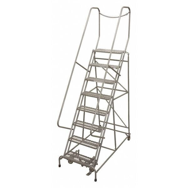 $1,304.99 / eachWeb price110 in H Steel Rolling Ladder, 8 StepsSKU G3493485Categories Material HandlingDescription Rolling Ladder, Material Steel, Platform Height 80 in, Handrails Included Yes, Handrail Height 30 in, Overall Height 110 in, Number of Steps 8, Assembled, Load Capacity 450 lb, Step Tread Expanded Metal, Platform Depth 10 in, Platform Width 24 in, Bottom Width 32 in, Base Depth 110 in, Overall Width 32 in, Climbing Angle 59 Degrees , Step Depth 7 in, Step Width 24 in, Ladder Actuation Foot Activated Step Lock, Finish Powder Coated, Color Gray, Standards ANSI, OSHA, Rear Exit YesgraingerSKU: 21UT78, mscSKU: , zoro_no: G3493485, mongo_id: 65bbe6b23aaddbd5a90499ed