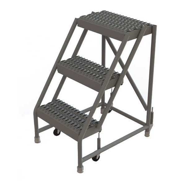 $809.99 / eachWeb price60 in H Steel Tilt and Roll Ladder, 3 StepsSKU G0999717Categories Material HandlingDescription Tilt and Roll Ladder, Material Steel, Platform Height 30 in, Handrails Included Yes, Handrail Height 30 in, Overall Height 60 in, Number of Steps 3, Assembled, Load Capacity 450 lb, Step Tread Serrated, Platform Depth 20 in, Platform Width 24 in, Bottom Width 28 in, Base Depth 41 in, Overall Width 28 in, Climbing Angle 59 Degrees , Step Depth 7 in, Step Width 24 in, Ladder Actuation None, Finish Powder Coated, Color Gray, Standards ANSI, OSHA, Includes Removable Rear Chain, Rear Exit YesgraingerSKU: 21VC11, mscSKU: , zoro_no: G0999717, mongo_id: 65bbe87822d7a989a98f9f46