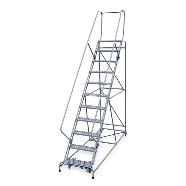 SKU G3491245Categories Material HandlingDescription Rolling Ladder, Material Steel, Platform Height 110 in, Handrails Included Yes, Handrail Height 30 in, Overall Height 140 in, Number of Steps 11, Unassembled, Load Capacity 450 lb, Step Tread Expanded Metal, Platform Depth 10 in, Platform Width 24 in, Bottom Width 32 in, Base Depth 156 in, Overall Width 32 in, Climbing Angle 59 Degrees , Step Depth 7 in, Step Width 24 in, Ladder Actuation Foot Activated Step Lock, Finish Powder Coated, Color Gray, Standards ANSI, OSHA, Rear Exit NograingerSKU: 21UX92, mscSKU: , zoro_no: G3491245, mongo_id: 65bbe87822d7a989a98f9f25