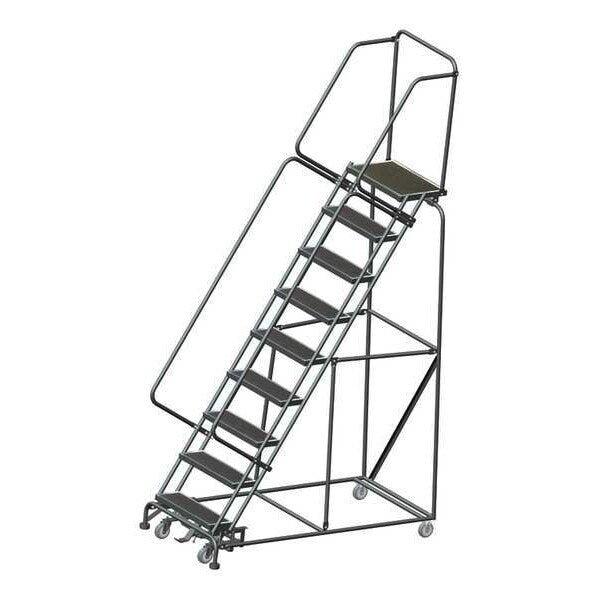$1,186.24 / eachWeb price120 in H Steel Rolling Ladder, 9 StepsSKU G9863296Categories Material HandlingDescription Rolling Ladder, Material Steel, Platform Height 90 in, Handrails Included Yes, Handrail Height 30 in, Overall Height 120 in, Number of Steps 9, Unassembled, Load Capacity 450 lb, Step Tread Serrated, Platform Depth 10 in, Platform Width 24 in, Bottom Width 32 in, Base Depth 67 in, Overall Width 32 in, Climbing Angle 59 Degrees , Step Depth 7 in, Step Width 24 in, Ladder Actuation Foot Activated Step Lock, Finish Powder Coated, Color Gray, Standards ANSI, OSHA, Includes Crutch Tips, Rear Exit NograingerSKU: 5FYU9, mscSKU: , zoro_no: G9863296, mongo_id: 65bbe87822d7a989a98f9f2f