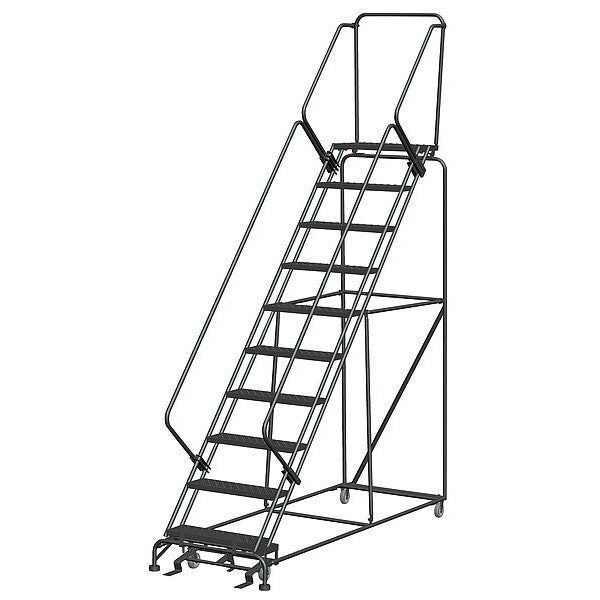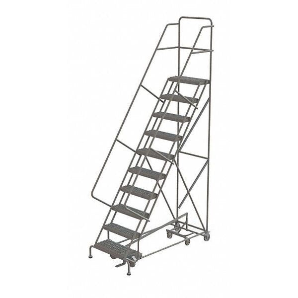 $1,679.99 / eachWeb price133 in H Steel Rolling Ladder, 10 StepsSKU G7325930Categories Material HandlingDescription Rolling Ladder, Material Steel, Platform Height 100 in, Handrails Included Yes, Handrail Height 30 in, Overall Height 133 in, Number of Steps 10, Unassembled, Load Capacity 450 lb, Step Tread Perforated, Platform Depth 14 in, Platform Width 24 in, Bottom Width 32 in, Base Depth 98 in, Overall Width 32 in, Climbing Angle 50 Degrees , Step Depth 7 in, Step Width 24 in, Ladder Actuation Foot Activated Step Lock, Finish Powder Coated, Color Gray, Standards ANSI, OSHAgraingerSKU: 9NVR3, mscSKU: , zoro_no: G7325930, mongo_id: 65bbe87822d7a989a98f9f0d