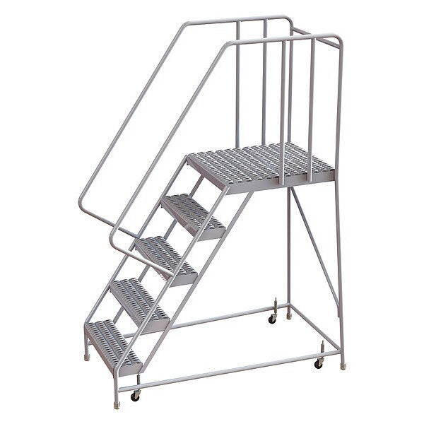 SKU G0979916Categories Material HandlingDescription Rolling Ladder, Material Aluminum, Platform Height 50 in, Handrails Included Yes, Handrail Height 32 in, Overall Height 82 in, Number of Steps 5, Assembled, Load Capacity 350 lb, Step Tread Serrated, Platform Depth 28 in, Platform Width 16 in, Bottom Width 22 in, Base Depth 58 in, Overall Width 22 in, Climbing Angle 56 Degrees , Step Depth 7 in, Step Width 16 in, Ladder Actuation Spring-Loaded Casters, Finish Aluminum Mill, Color Aluminum, Standards ANSI, OSHA, Includes Crutch TipsgraingerSKU: 25NY17, mscSKU: , zoro_no: G0979916, mongo_id: 65bbe87822d7a989a98f9ef6
