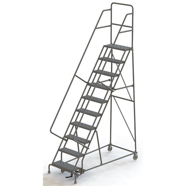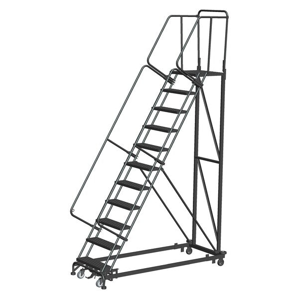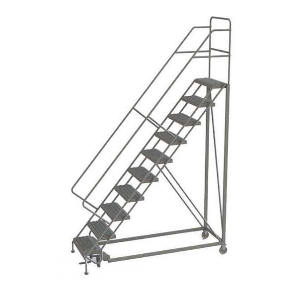 $1,799.99 / eachWeb price133 in H Steel Rolling Ladder, 10 StepsSKU G9850644Categories Material HandlingDescription Rolling Ladder, Material Steel, Platform Height 100 in, Handrails Included Yes, Handrail Height 30 in, Overall Height 133 in, Number of Steps 10, Assembled, Load Capacity 450 lb, Step Tread Perforated, Platform Depth 21 in, Platform Width 24 in, Bottom Width 32 in, Base Depth 81 in, Overall Width 32 in, Climbing Angle 59 Degrees , Step Depth 7 in, Step Width 24 in, Ladder Actuation Foot Activated Step Lock, Finish Powder Coated, Color Gray, Standards ANSI, OSHAgraingerSKU: 8CW88, mscSKU: , zoro_no: G9850644, mongo_id: 65bbe87822d7a989a98f9f12