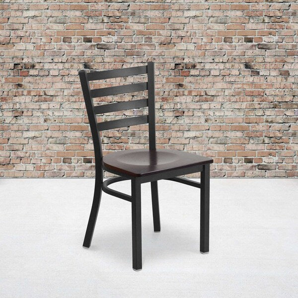 Ladder Back Mahogany Wood Restaurant Barstool, Black Vinyl Seat, PK2