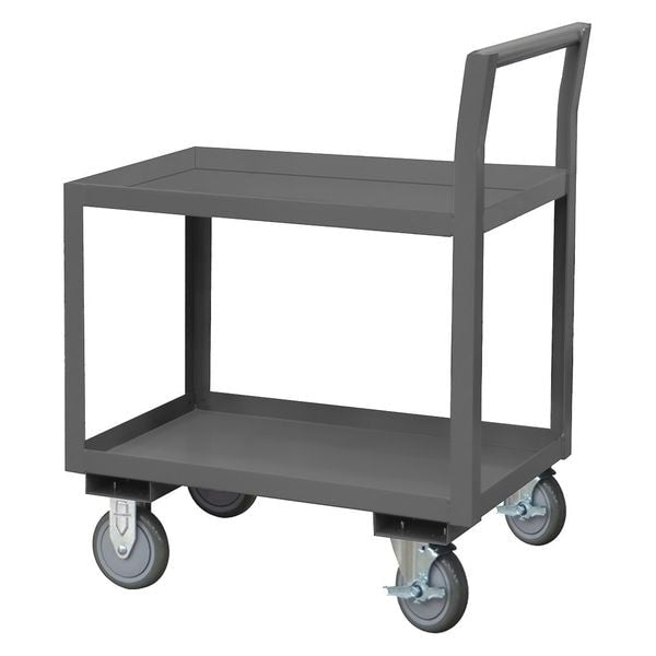 SKU G2147875Categories Material HandlingDescription Utility Cart with Lipped Metal Shelves, Load Capacity 1,200 lb, Steel Material, 14 ga Gauge, Powder Coated Finish, Gray Color, Overall Length 54 1/2 in, Overall Width 30 1/4 in, Number of Shelves 2, Capacity per Shelf 600 lb, Distance Between Shelves 21 1/2 in, Shelf Length 48 in, Shelf Width 30 in, Handle Height 36 in, Top Shelf Height 36 in, Assembled/Unassembled AssembledgraingerSKU: 49Y569, mscSKU: , zoro_no: G2147875, mongo_id: 65bbe84d9a749db8227848c6