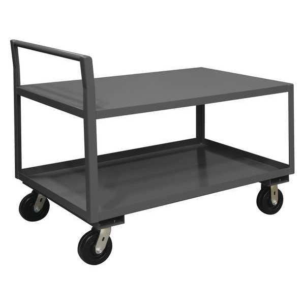 SKU G2266227Categories Material HandlingDescription Low-Profile Utility Cart with Lipped Metal Shelves, Load Capacity 1,200 lb, Steel Material, 14 ga Gauge, Powder Coated Finish, Gray Color, Overall Length 66 1/2 in, Overall Width 30 1/2 in, Number of Shelves 2, Capacity per Shelf 600 lb, Distance Between Shelves 13 1/4 in, Shelf Length 60 in, Shelf Width 30 in, Handle Height 36 in, Top Shelf Height 24 in, Assembled/Unassembled AssembledgraingerSKU: 10F452, mscSKU: , zoro_no: G2266227, mongo_id: 65bbe84d9a749db8227848c5