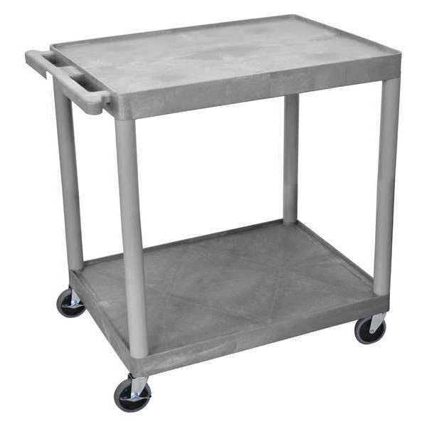 Plastic Utility Cart with Deep Lipped & Flush Plastic Shelves, Flat, 2 Shelves, 500 lb