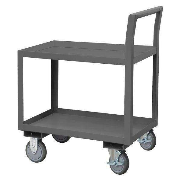 $544.99 / eachWeb priceSteel Low-Profile Utility Cart with Lipped Metal Shelves, Raised, 2 Shelves, 1,200 lbSKU G2266236Categories Material HandlingDescription Low-Profile Utility Cart with Lipped Metal Shelves, Load Capacity 1,200 lb, Steel Material, 14 ga Gauge, Powder Coated Finish, Gray Color, Overall Length 54 1/2 in, Overall Width 30 1/2 in, Number of Shelves 2, Capacity per Shelf 600 lb, Distance Between Shelves 13 1/4 in, Shelf Length 48 in, Shelf Width 30 in, Handle Height 36 in, Top Shelf Height 24 in, Assembled/Unassembled AssembledgraingerSKU: 10F451, mscSKU: , zoro_no: G2266236, mongo_id: 65bbe8789a749db822792f3a